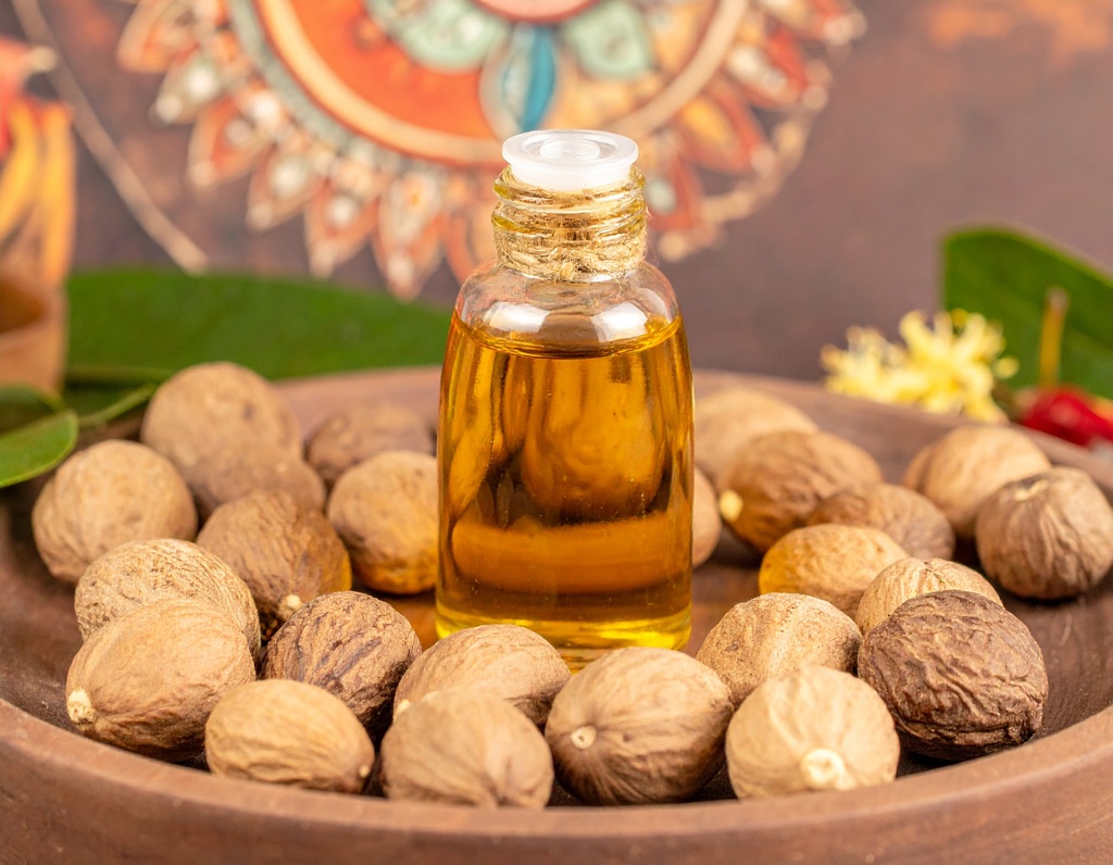 Nutmeg oil is valued for its warm, spicy fragrance and therapeutic benefits. It supports digestion, relieves muscle pain, and is widely used in aromatherapy.